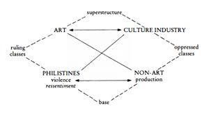 Ainsi, « l’industrie culturelle » n’est pas une théorie de la culture, mais une théorie de l’industrie, d’une branche des monopoles interconnectés du capitalisme tardif qui font de l’argent avec ce qu’on appelait autrefois la culture. Le sujet ici est la commercialisation de la vie, et les deux auteurs sont plus proches d’une théorie de la vie quotidienne que d’une théorie de la « culture » au sens actuel. La théorie de Williams, en dépit de sa nostalgie apparente, est vraiment contemporaine, car elle correspond à une acculturation de la vie sociale qui est beaucoup plus profonde et « totale » qu’on aurait pu concevoir dans les années 1930 (quand la production industrielle de masse de biens culturels – le « fordisme » – était dans son enfance). Adorno et Horkheimer restent « modernes » dans ce sens (xi), car bien qu’ils aient énuméré avec prescience toute la gamme de tendances vers ce qui allait devenir la société de l’image (xii), ils n’étaient pas en mesure d’anticiper la transformation dialectique de la quantité en qualité entraînée par l’intensification de ce processus. Leur critique reste donc non une Kulturkritik, mais une Ideologiekritik : comme dans le marxisme classique, « l’idéologie » est ici le concept central, et n’a pas encore été modifiée par les demandes d’un ordre social postmoderne (comme, par exemple, dans la lecture révisionniste d’Althusser) (xiii).